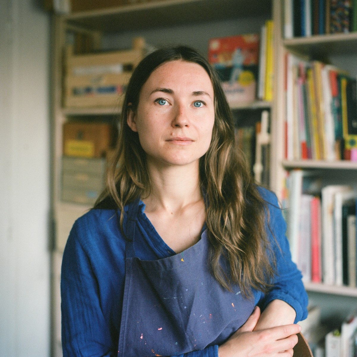 Gaby Bazin est née au bord de la Méditerranée en 1992. Après avoir voyagé en Italie et en République Tchèque pour apprendre l’impression typographique et la reliure, elle pose ses valises à Saint-Denis, au sein du collectif La Briche Foraine. Elle est diplômée des Arts Décoratifs de Paris (Ensad), spécialité Image imprimée, en 2015. Dans le sillage des avant-gardes, son dessin en couches de couleurs vives fait dialoguer trames, aplats et textures. Ses livres se nourrissent de ses rencontres avec les enfants lors d’ateliers autour du dessin et de la découverte des techniques d’impression. Avec ses jeunes lecteurs et lectrices, elle a a cœur de partager le plaisir du geste, du dessin et de la couleur. Dans des albums soigneusement documentés, elle les entraîne dans une découverte joyeuse des métiers de l’estampe. Sa pratique des techniques d’impression artisanales (gravure, sérigraphie…) guide la composition de ses images, précises et minimalistes.