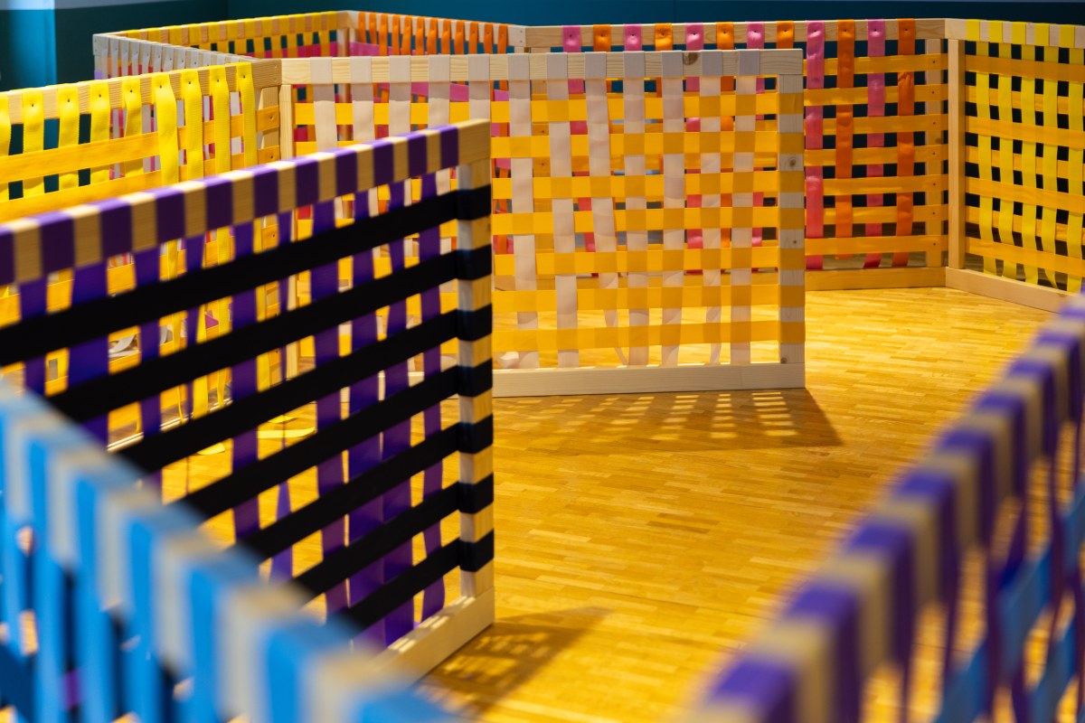 L’œuvre immersive Labyrinthe à tisser, offre une initiation ludique au tissage.