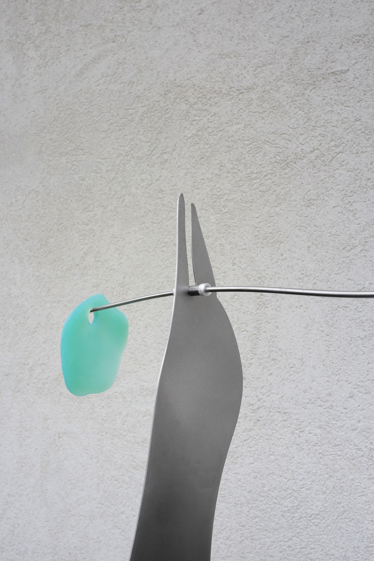 Des petits bouts de verre entre ciel et mer naît du plaisir des tout-petits de glaner des cailloux, coquillages ou bouts de verre dépolis par les vagues. C’est le temps de l’exploration, des mondes imaginaires où chaque trouvaille, riche en nuances de couleur, devient un trésor dont il faut prendre soin. À partir de ses propres souvenirs d’enfant, Côme Clérino imagine des sculptures mobiles qui cherchent un équilibre entre légèreté et fascination. Suspendues sur de fines tiges en métal, des formes singulières, douces et colorées flottent dans l’espace. Elles invitent à commencer une nouvelle collection improbable, à imaginer ces sculptures comme les protagonistes d'une nouvelle histoire pleine de conversations rythmées. Tendez l’oreille ! Et laissez-vous bercer par la narration de Florian Cochet « Le roi des emplumés » qui accompagne le balancement de cet équilibre poétique (texte récité par Natacha Triou).