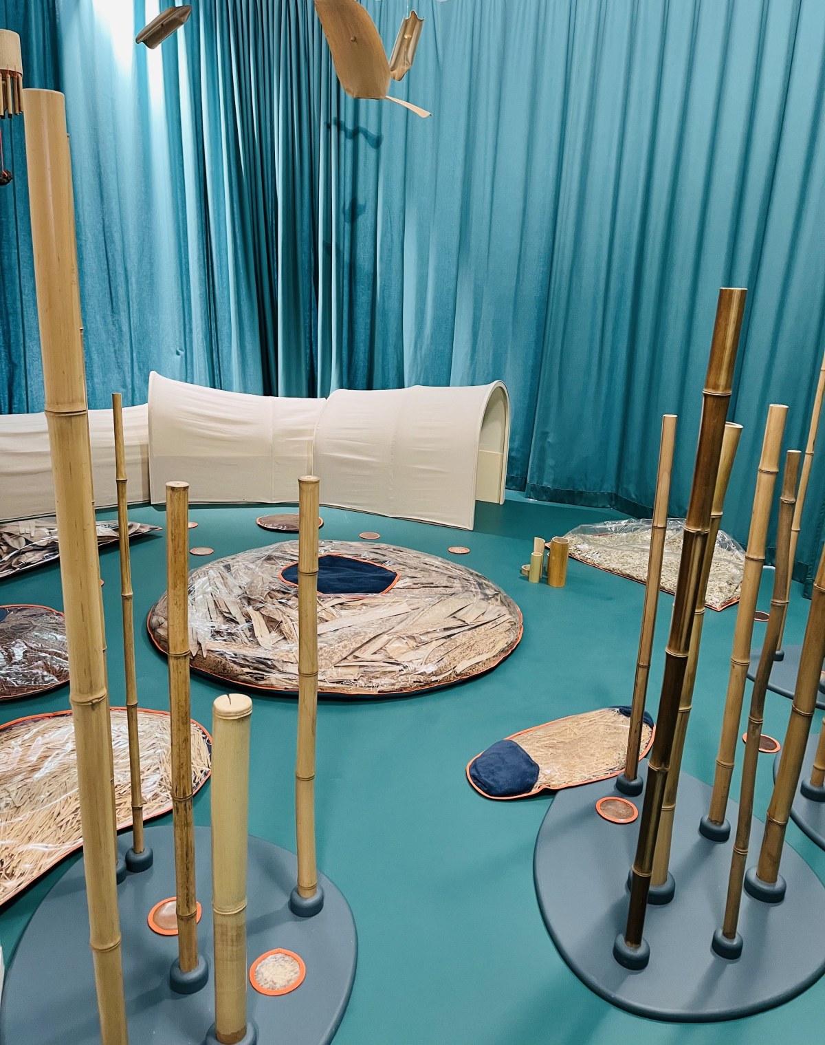 Bébé trek est un dispositif de Flora Koel réalisé à l’attention des 0-24 mois. Il est conçu exclusivement en matériaux naturels (bambou, pierres volcaniques...) et travaillé pour être manipulable par les enfants. La designer Flora Koel s'inspire de la thématique de la découverte à travers la randonnée. Son œuvre tend à mettre l'enfant dans une position d'explorateur en suivant son instinct à travers les déclinaisons de matières qui lui sont proposées.