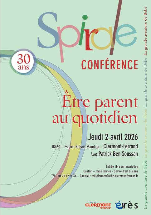 A l’occasion des 30 ans de la revue Spirale, mille formes, Graines de Spectacles et le pôle petite enfance famille de la Gauthière de la Ville de Clermont-Ferrand invitent parents et professionnels de la petite enfance à la conférence Être Parent au quotidien avec le pédopsychiatre Patrick Ben Soussan.
