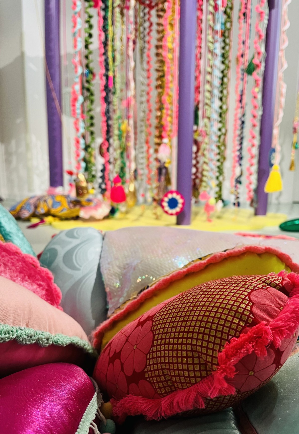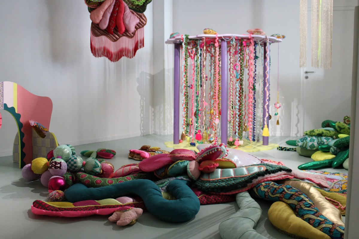 Cette installation à la fois douce, duveteuse, bruyante, silencieuse et peuplée d’éléments végétaux, invite les tout-petits à traverser une forêt de lianes, rouler sur une immense pieuvre florale, jouer à disparaître derrière d’étranges plantes … Cette jungle de tissus, haute en couleurs, cache de nombreuses surprises visuelles et sonores.