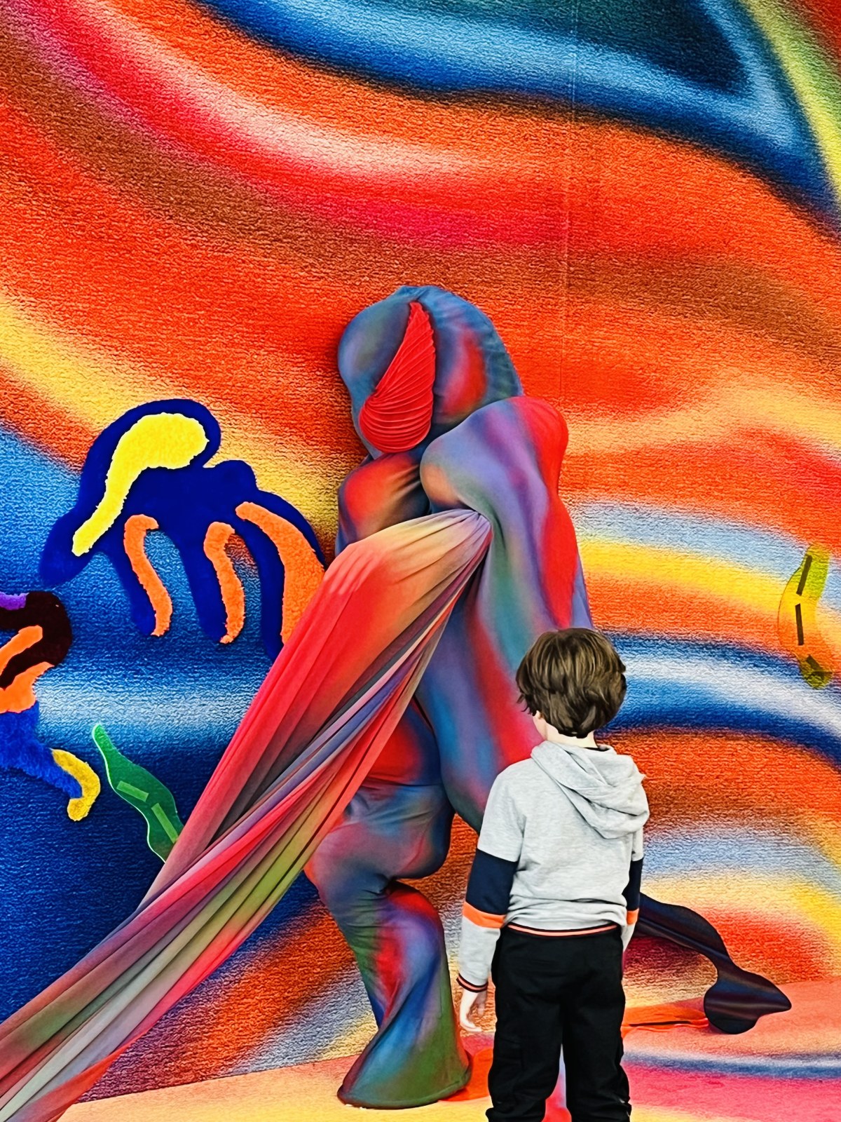 Toucher l'horizon est une exposition interactive conçue comme une immersion dans l’univers pictural de Valentina Canseco. L’artiste invite les enfants à arpenter, caresser, manipuler ses compositions. La peinture s'extrait de son support habituel pour nous faire ressentir la couleur à travers différentes matières, se laissant transformer par l'imagination des jeunes visiteurs. Ce terrain d’exploration pour les 2-6 ans est un voyage coloré en plusieurs escales.